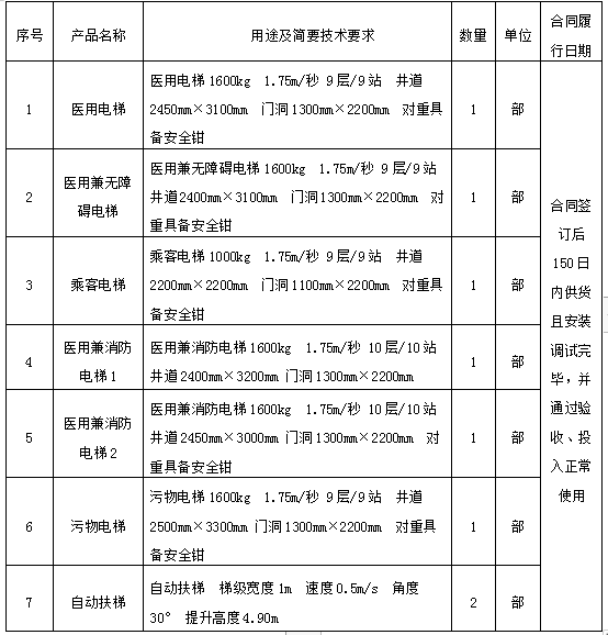 2、 采购项目名称:时博(中国)市中医院二期扩建项目-综合病房楼电梯采购与安装