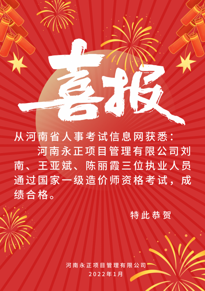 我公司有3人通过国家一级造价师资格考试,成绩合格。