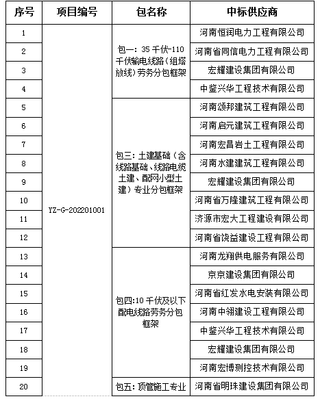 时博(中国)市丰源电力有限公司2022年施工供应商框架入围项目的评标工作已结束,经评标委员会评审并报公司批准,现将中标结果公告如下: