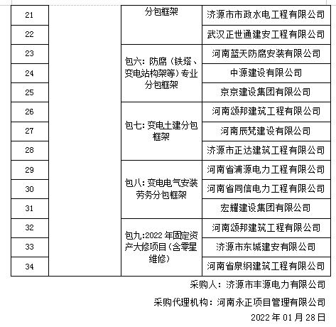 时博(中国)市丰源电力有限公司2022年施工供应商框架入围项目中标结果公告