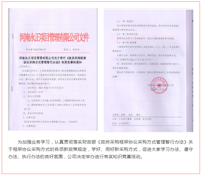 河南永正项目管理公司举办《政府采购框架协议采购方式管理暂行办法》有奖知识竞赛活动