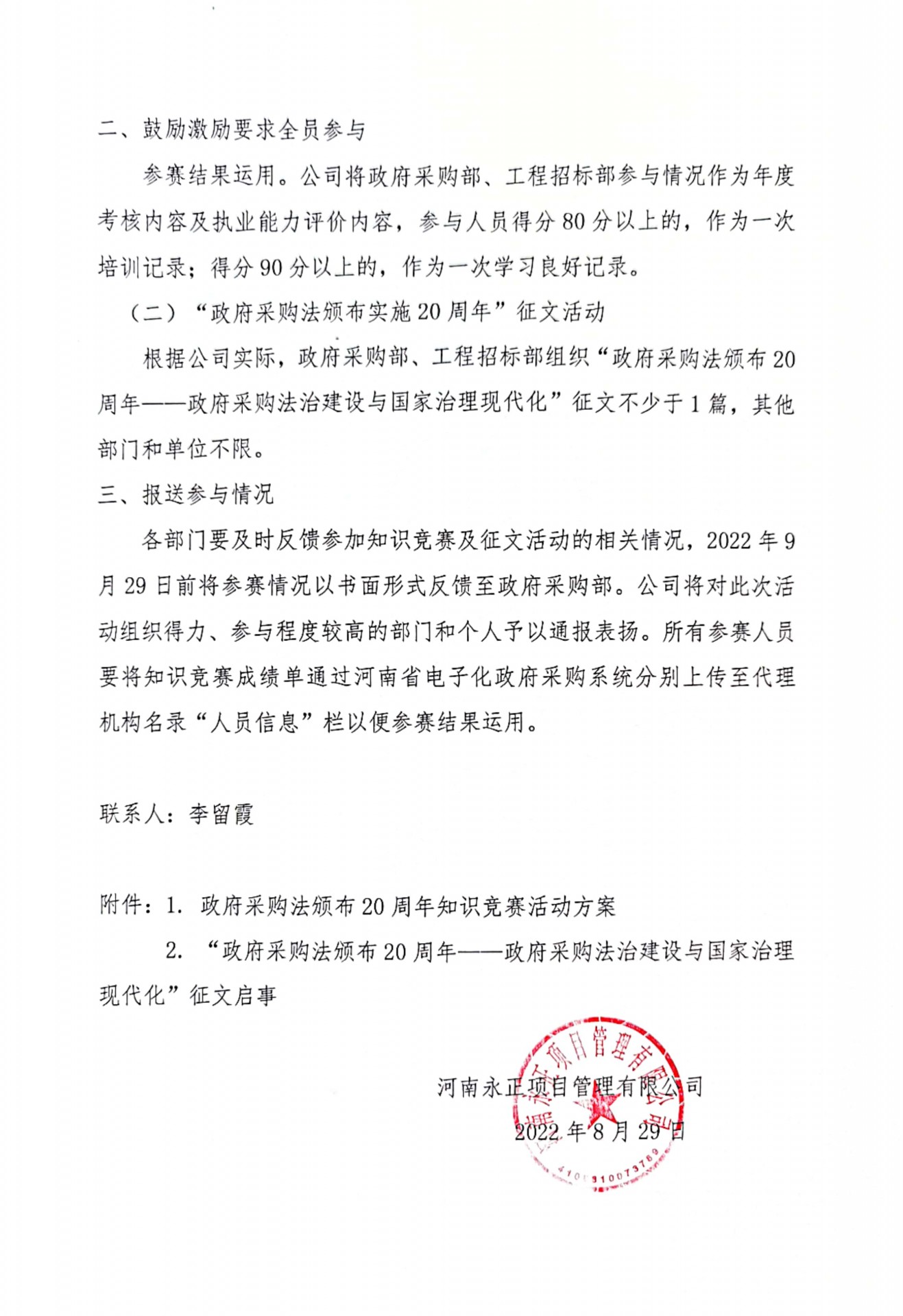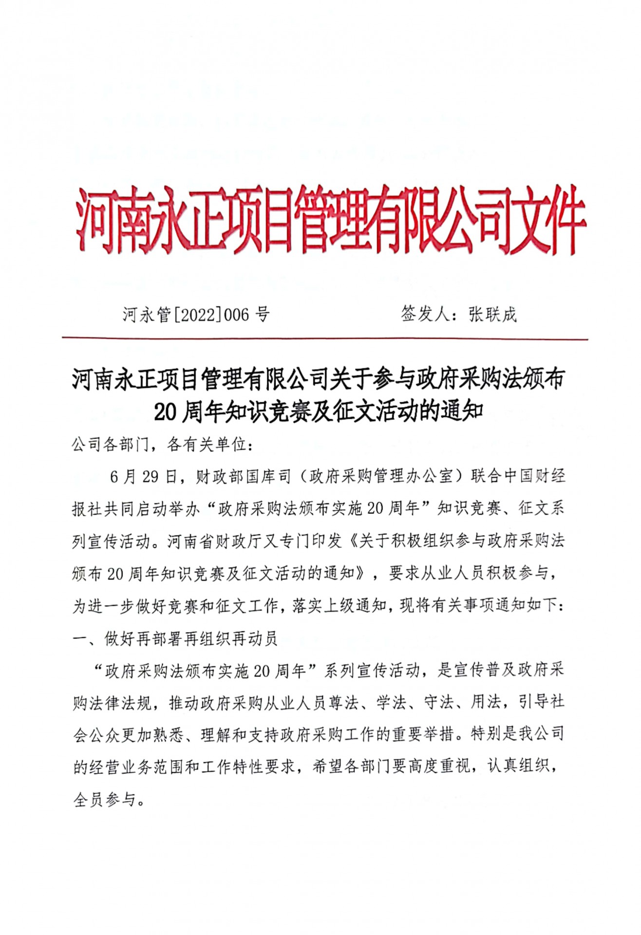 6月29日,财政部国库司(政府采购管理办公室)联合中国财经报社共同启动举办“政府采购法颁布实施20周年”知识竞赛、征文系列宣传活动以来,河南省财政厅又专门印发《时博入口积极组织参与政府采购法颁布20周年知识竞赛及征文活动的通知》,要求从业人员