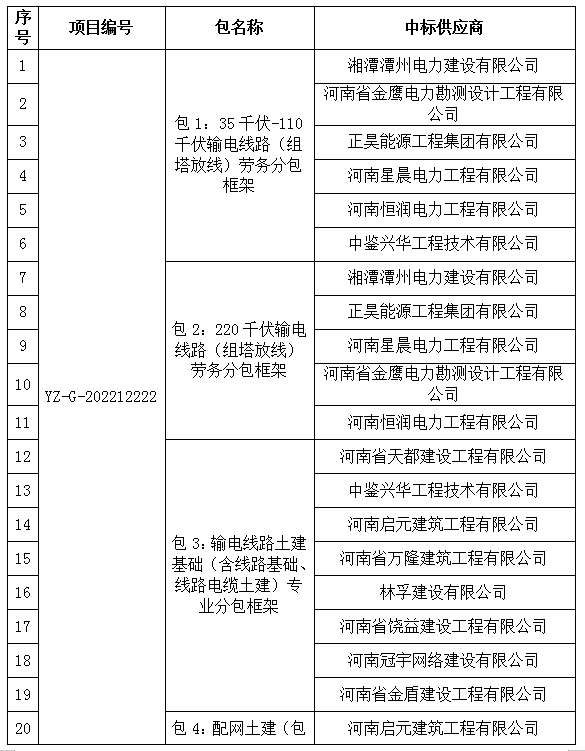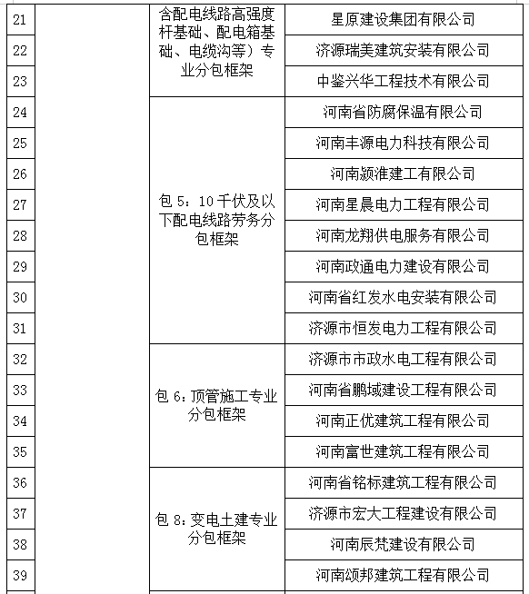 时博(中国)市丰源电力有限公司2023年施工供应商框架入围项目的评标工作已结束,经评标委员会评审并报公司批准,现将中标结果公告如下: