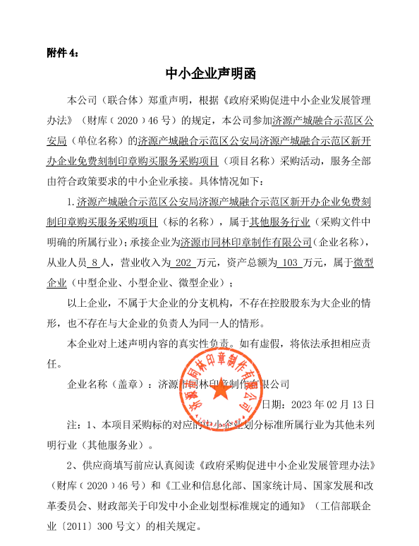 时博(中国)产城融合示范区公安局时博(中国)产城融合示范区新开办企业免费刻制印章购买服务采购项目成交结果公告