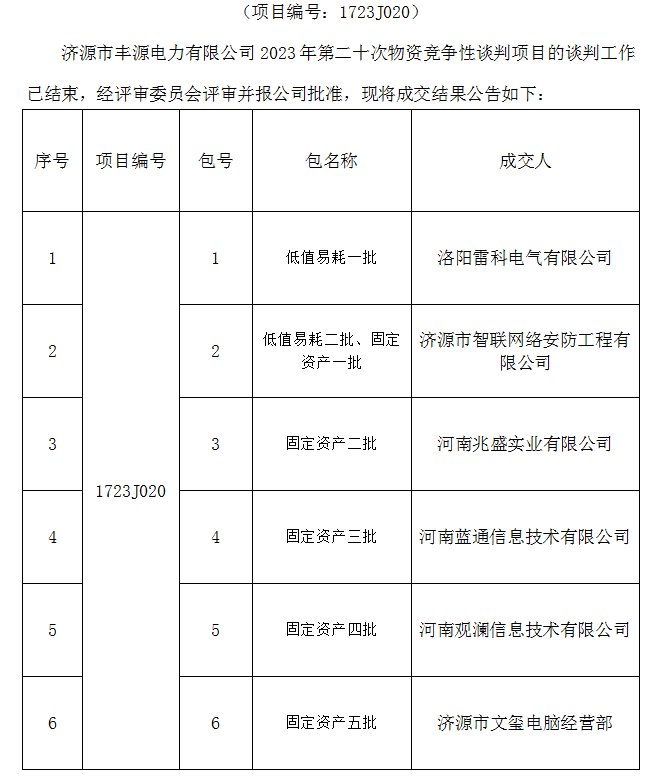 下一篇:时博(中国)市丰源电力有限公司2023年七月第一批服务类竞争性谈判采购成交结果公告